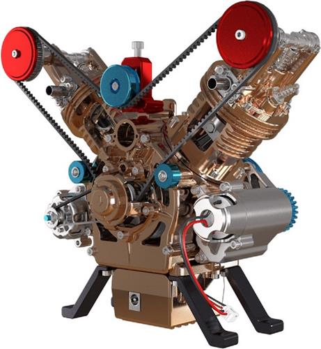 Deze V2-motor wordt aangedreven door een duurzame 450mAh lithiumbatterij, waardoor de motor tot 1,5 uur kan draaien op een volle accu. Het bouwpakket wordt geleverd in een prachtige metalen geschenkdoos, waardoor het ook een ideaal cadeau is voor familie en vrienden. Met gedetailleerde geïllustreerde instructies en meer dan 200 onderdelen is dit modelbouwpakket een unieke toevoeging aan elke collectie.