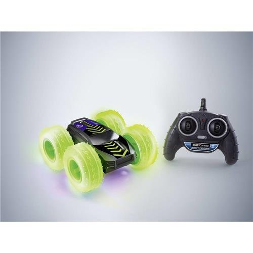 De RC Stunt Car - 1080 Stunt Monster Mini is uitgerust met ingebouwde LED-wielen die niet alleen zorgen voor een coole uitstraling, maar ook voor indrukwekkende verlichting tijdens nachtelijke stunts. De 2,4 GHz-technologie zorgt voor een betrouwbare verbinding met de afstandsbediening, waardoor je spannende races en competities kunt aangaan met vrienden en familie.
