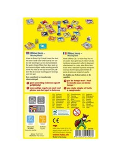 Rhino Hero - Missing Match van HABA is een spannend reactie- en denkspel waarbij spelers de schurk moeten helpen om tweelingen te laten verdwijnen. Ronde voor ronde kiest de schurk een tweeling die moet verdwijnen, en het is aan de spelers om goed naar de kaarten te kijken en te weten welke tweeling vermist wordt. Snelheid is essentieel, want degene die de meeste tweelingparen combineert, wint het spel.