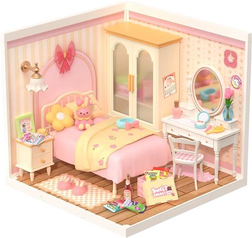 Ontwaak uit je schoonheidsslaapje in de betoverende Lovely Pink Bedroom van Rolife. Dit prachtige doe-het-zelf miniatuurhuisje straalt een zachte, jeugdige energie uit, perfect voor iedereen die een dromerige slaapkamer wil creëren. Met zijn comfortabele bed, pluizige konijnenpantoffels en strakke meubels biedt dit miniatuurhuis alles wat je nodig hebt voor een heerlijke dag vol creativiteit en ontspanning.