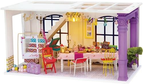 Robotime Tijd voor een Feestje DGF03 - Houten modelbouw - Miniatuur bouwpakket Poppenhuis met LED licht - DIY
