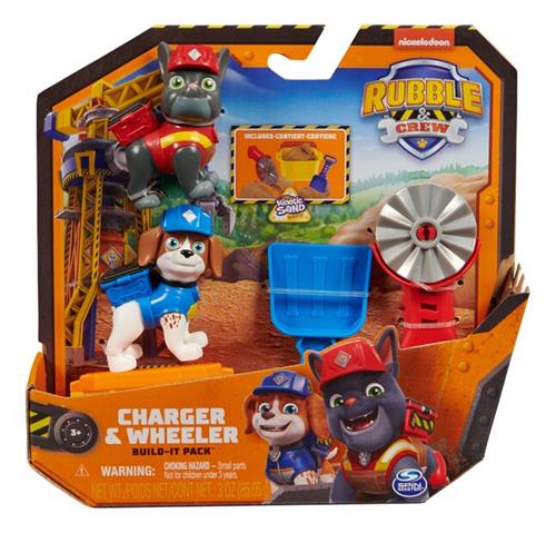 Ontdek de spannende wereld van avontuur met de Rubble 2 Pack Charger en Wheeler! Dit unieke speelsetje, geïnspireerd op de populaire serie PAW Patrol, brengt de actie rechtstreeks naar je woonkamer. Gekleed in hun bouwuniformen zijn Charger en Wheeler klaar om te helpen met het bouwen en creëren van eindeloze constructiespeelplezier.