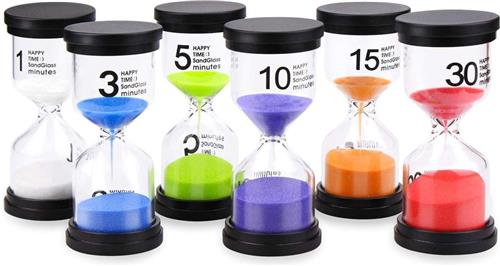 Ben je op zoek naar zandlopers met verschillende tijden en kleuren? Zoek dan niet verder. RX Goods heeft de zandlopers met de beste kwaliteit voor je geselecteerd. De tijden gaan vanaf 1 minuut tot wel 30 minuten lang!Overal toepasbaar Zandlopers zijn belangrijk bij vele verschillende activiteiten en kunnen overal gebruikt worden zoals spelletjes, op scholen, koken, tijd meten, tijdmanagement, leren tellen, tandenpoetsen & douchetijd workshops, sporten, activiteiten en op school natuurlijk. Daarnaast is het een mooie opvulling van je decoratie in huis en of kantoor.
