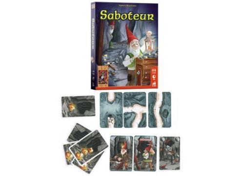 De schatgravers en saboteurs zitten elkaar dwars in dit rollenkaartspel. De vraag is alleen wie aan welke kant staat! Iedere speler krijgt een rollenkaart, die aangeeft of hij een saboteur of een schatgravende dwerg is. Hij houdt zijn rol voor iedereen geheim, maar mag natuurlijk ondertussen roepen wat hij wil. Verder krijgt iedere speler een aantal kaarten met gangen, gereedschap of sabotagemogelijkheden. De schatgravers hebben tot doel om de schat te vinden, terwijl de saboteurs dat proberen te voorkomen. Zo kunnen ze elkaars gereedschap saboteren of gangen de verkeerde kant uitleggen. Omdat niet met zekerheid kan worden vastgesteld wie bij welke partij hoort, kan het best voorkomen dat je zo een bondgenoot hindert. De winnende partij krijgt aan het einde van het spel een beloning. Wie na een aantal ronden de meeste beloningen heeft verzameld, wint het spel. Saboteur is een ideaal spel voor grotere groepen, maar is al erg leuk vanaf 3 spelers.