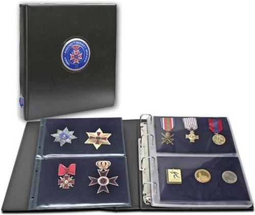 Met dit universele verzamelalbum kun je heel je collectie favoriete medailles met een gerust hart overal mee naartoe nemen. De ringband beschikt over een stabiel 4-ringmechanisme en sluit als een boek dankzij het gepatenteerde klemmechanisme in het album. De bladen zijn gemaakt van stevig, weekmakervrij plastic en hebben 2 pockets met tableau per pagina. De panelen zijn geperforeerd met twee rijen gaatjes, zodat medailles op elke positie kunnen worden geplaatst; met het lint op de bovenste rij of in de middelste rij voor eretekens met een naald aan de achterzijde. De panelen zijn dubbelzijdig zodat de naalden in het binnenste deel van het inzetstuk verdwijnen en niet uitsteken. Uw verzameling is op deze manier optimaal beschermd en komt goed tot zijn recht.