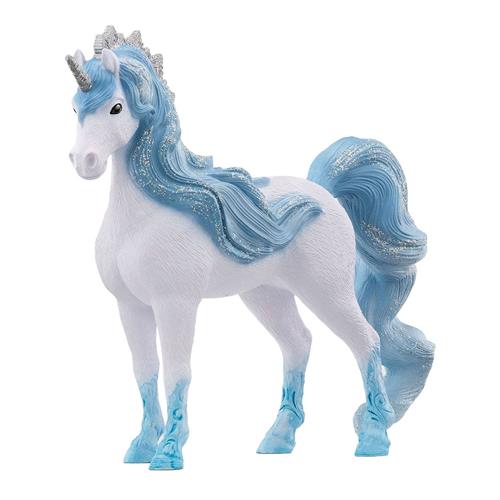 De Flowy Eenhoornmerrie van Schleich BAYALA is een betoverende verschijning in de wereld van BAYALA. Met haar sneeuwwitte vacht en prachtige tatoeage valt ze meteen op. Haar blauwe glittermanen glinsteren als een waterval en haar staart lijkt wel te bestaan uit pure magie. Een zilveren kuif in haar nek doet denken aan ijskristallen, waardoor ze symbool staat voor de kracht van water. Een waarlijk magisch wezen om mee te spelen!