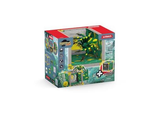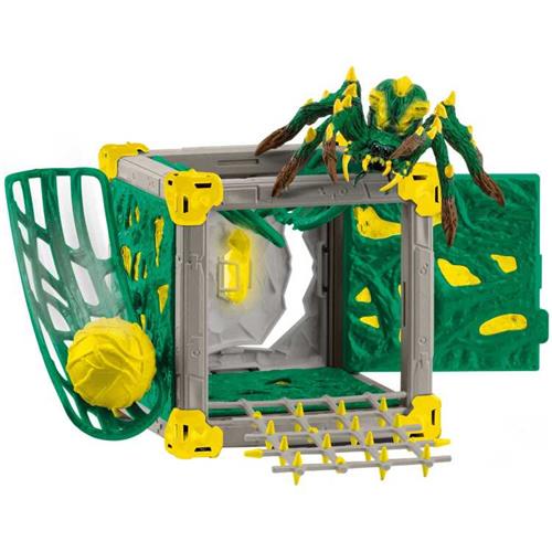 Stel je eigen EPISCHE gevechten voor met de schleich ELDRADOR CREATURES Jungle Tarantula BattleCave! Deze angstaanjagende junglespin staat klaar om al haar vijanden te verslaan met haar dodelijke aanvallen. Wees gewaarschuwd, de grote kogel rolt los en kan op elk moment toeslaan via de rollenbaan. Met een verborgen valluik onder de lianen op het dak, zal deze gifgroen-gele tarantula elke aanval slim afwachten en verijdelen.