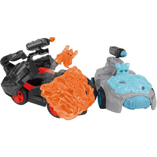 Het doorzichtige pantser van zijn crashmobiel is zo hard dat hem niets kan gebeuren. Plotseling remt hij hard. Zag hij daar niet een vijandige MINI CREATURE uit de ijswereld? Hij brengt zijn vuurwapen in positie en haalt de trekker over. Heeft hij hem geraakt? Stoere actievoertuigen voor de volgende aanval van de MINI CREATURES op ELDRADOR®! Uitgerust met een terugtrekmotor schieten de MINI'S pijlsnel door de vijf werelden. Dankzij de draaibare schietfunctie zijn ze gewapend voor elk gevecht.