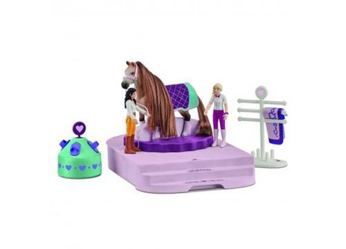 Bereid je voor op een magische schoonheidssalonervaring met de schleich HORSE CLUB Sofia's Beauties! Laat je verbeelding de vrije loop terwijl je speelt met deze set van 99 onderdelen, inclusief 2 prachtige paarden met kambaar manen. Verwen de paarden in de beautysalon en zorg ervoor dat ze er op hun best uitzien. Met deze set kunnen kinderen urenlang creatief spelen en de band tussen hen en de paarden versterken. Een perfect cadeau voor jonge paardenliefhebbers die graag hun eigen verhalen willen creëren.