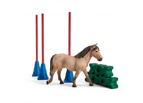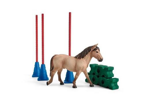 Laat je pony slalommen met deze slalom set van Schleich. Met deze extra attributen kun jij van jouw paard het snelste, hoogstspringende paard maken! De set bevat 1 Düener paard, 3 kegels, 3 standers en 5 Cavaetti-kruisen.