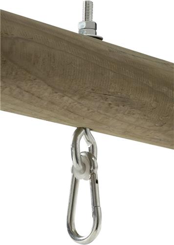 Deze schommelhaak is gemaakt van hoogwaardig materiaal en is eenvoudig te installeren. De karabijnhaak maakt het eenvoudig om de schommel op te hangen en af te nemen, wat handig is voor het wisselen van speeltoestellen. Met deze schommelhaak kunnen kinderen urenlang plezier beleven in de achtertuin of op de speelplaats.