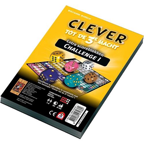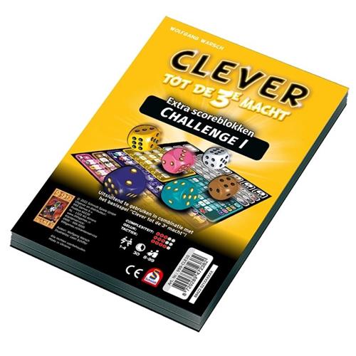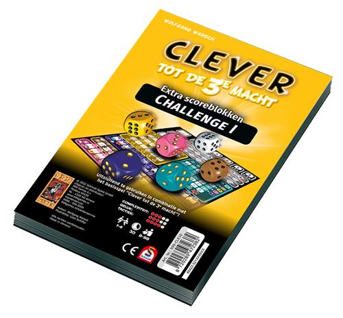 Voor doorgewinterde Clever-spelers en andere mensen op zoek naar een uitdaging is er nu Clever tot de 3e Macht: Challenge 1! Deze extra scoreblokken voor Clever tot de 3e Macht verschillen van de vellen van het originele spel. De spelregels zijn verder hetzelfde, maar moeten nu worden gebruikt op een scorevel dat net wat anders werkt. Zo is de lay-out van de gele en de blauwgroene categorie compleet veranderd en moet je bij de blauwe categorie nu rekening houden met door elkaar lopende plus- en mintekens.