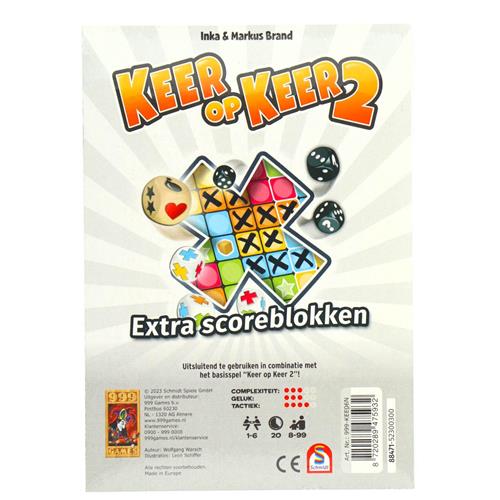 Zoveel Keer op Keer 2 gespeeld dat je scoreblok bijna leeg is? Geen nood, met deze 2 extra scoreblokken kun je weer een tijd vooruit! Met een verpakkingsgewicht van 0.25 kg en een spelsoort van geluksspel, is dit spel geschikt voor kinderen en volwassenen vanaf 8 jaar. De verpakking bevat 2 scoreblokken van de editie 'Scoreblokken Keer op Keer 2' van het merk 999 Games.