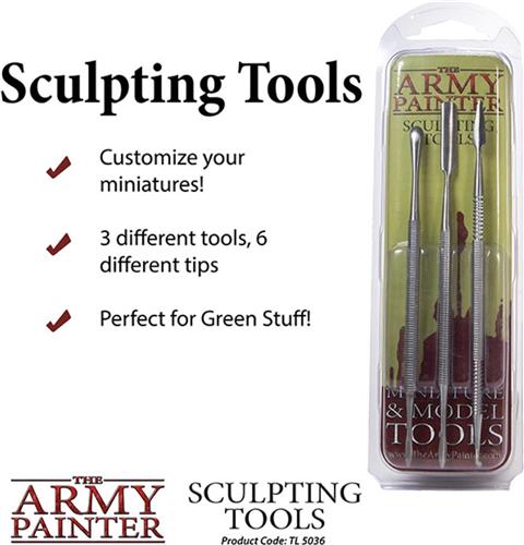 Met de Citadel sculpting tool set kun je je miniaturen aanpassen met behulp van groen spul. De nylon spadevormige tool is perfect voor het aanbrengen van textuurverf en Liquid Green Stuff, terwijl de roestvrijstalen speerpunt en de schuine naaldpunt gereedschappen ideaal zijn voor het creëren van haar en maliënkolder.