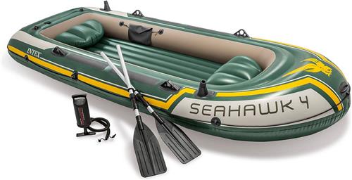 De Intex SEAHAWK 4 BOOT SET is een stevige opblaasboot waarmee je het water op kan voor avontuurlijke tochten. Met een maximum belastbaar gewicht van 400 kg is deze boot geschikt voor volwassenen die willen genieten van het water. De boot heeft een olijfgroene en olijfbruine kleur, wat zorgt voor een stoere uitstraling. Daarnaast is de boot voorzien van een CE markering voor veiligheid en kwaliteit.