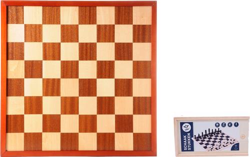 Altijd al willen schaken of dammen als een pro? Met deze set kun je direct van start. Dit semi-pro schaak- en dambord is ingelegd met walnoot/esdoorn fineer. Het bord heeft een donkere bruine opstaande rand en een totale afmeting van 42x42 cm. Een enkel schaakvlak is 4x4 cm. Het bord wordt geleverd met schaakstukken. De schaakstukken zijn verpakt in een handig bewaardoosje. Nooit meer rondslingerende schaakstukken met deze basic schaakstukkenset in een handig houten bewaarkistje. Gemaakt van Essenhout. Er zitten 32 schaakstukken in het kistje, gemaakt van essenhout, kleur bruin/naturel. De koning heeft een hoogte van 77 mm. Het kistje heeft een schuifdeksel. De afmeting van het bewaarkistje is 20 x 10,5 x 5,5 cm. Het semi-pro schaakbord inclusief schaakstukken is een perfecte set voor schaakliefhebbers van alle leeftijden. Met een verpakkingsgewicht van 0.10 kg en gemaakt van stevig hout, is dit spel ideaal voor de echte schaakspelers. Met afmetingen van 45 cm breed, 10 cm hoog en 45 cm lang biedt dit schaakspel een grote speelruimte. Het spel is geschikt voor zowel jong als oud, met een aanbevolen minimum leeftijd van 9 jaar en een maximale leeftijd van 99 jaar. De verpakkingsinhoud omvat een schaak/dambord met schaakstukken en de spelregels in het Nederlands.