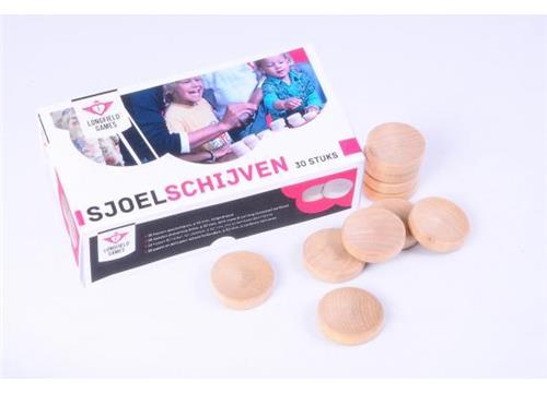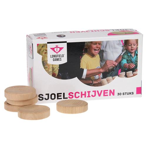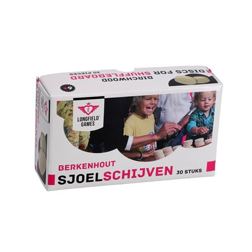 Set van 30 grote luxe sjoelschijven holgedraaid. Diameter 52 mm. Dikte 11,5 mm. De sjoelschijven (holgedraaid) zitten in een luxe verpakking met een diameter 52mm. Deze set bevat in totaal 30 houten sjoelschijven van hoogwaardige kwaliteit. De sjoelschijven hebben een bruine kleur en zijn gemaakt van hout. De verpakking heeft een gewicht van 317 g en de afmetingen zijn 118 mm breed, 60 mm hoog en 200 mm lang. Dit product is CE-gecertificeerd en het merk is Longfield. Het product heeft een EAN-code van 8716096010701.