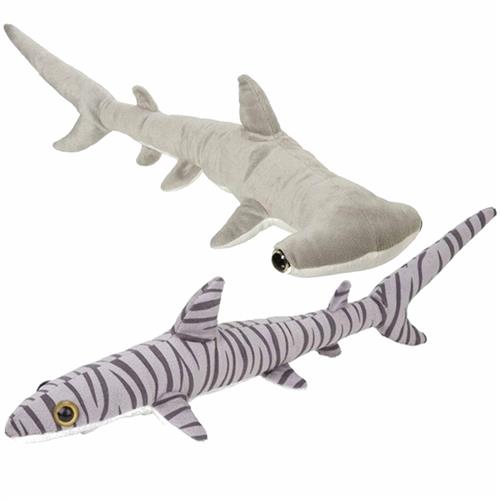 Beide knuffels zijn gemaakt van hoogwaardig polyester pluche en zijn heerlijk zacht om mee te knuffelen. De tijgerhaai knuffel heeft prachtige strepen en de hamerhaai knuffel is grijs van kleur. Met een lengte van 60 cm en een hoogte van 10 cm zijn deze knuffels ideaal om overal mee naartoe te nemen of om lekker mee te spelen thuis.