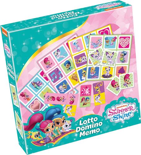 - Bij Bol.com kun je Shimmer&Shine 3-in-1 : Memo - Lotto - Domino kopen voor de prijs van € 11,99. Dit is vandaag de goedkoopste webshop.