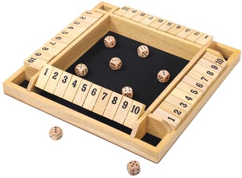 - Bij Bol.com kun je Shut the box de luxe - bordspel - 4 spelers - inclusief 2 houten dobbelstenen 29 x 29 cm kopen voor de prijs van € 21,00. Dit is vandaag de goedkoopste webshop.