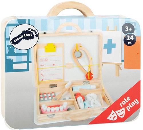 Heb jij altijd al dokter of tandarts willen zijn? Met deze koffer van Small Foot kan dat allebei! Als tandarts bestaat de uitrusting uit een injectiespuit, boor, tandenborstel, gebit met afneembare tanden, tandpasta en een tang. Als dokter bestaat de uitrusting uit een thermometer, een stethoscoop, een klembord, zalf, pincet en tabletten. Speel de beste dokter en/of tandarts die er is met alle medische speelgoedinstrumenten.