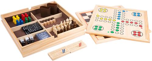 De Small Foot spellendoos 9-in-1 bevat negen verschillende spellen, waaronder schaken, dammen, Mens erger je niet (ludo), backgammon, domino, kaartspel en molenspel. Deze leuke spellendoos zorgt voor veel afwisseling en is perfect voor een regenachtige spellenmiddag. Gemaakt van stevig en duurzaam hout, dus gaat lang mee! De spellendoos heeft een afmeting van 35 x 35 x 6 cm en is geschikt voor kinderen vanaf 6 jaar.