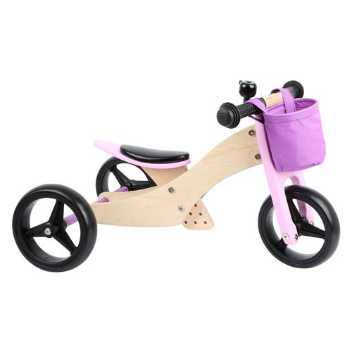 Small Foot - Houten Driewieler en Loopfiets 2in1 Roze