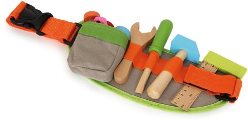 De gereedschapsriem is gemaakt van hoogwaardig hout en heeft een verstelbare riem, zodat hij comfortabel gedragen kan worden door kinderen van verschillende leeftijden. Het stimuleert niet alleen de creativiteit en verbeelding, maar ook de hand-oog coördinatie en fijne motoriek van kinderen.