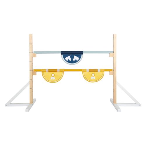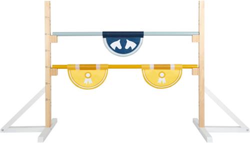 Beleef samen met deze houten obstakelset van Small Foot eindeloos speelplezier vol avontuur en actie! Voor jonge paardenliefhebbers is dit de ultieme toevoeging aan hun speelgoedcollectie. Met variabele hoogtes tussen de 20 en 70 cm kunnen kinderen vanaf 3 jaar oud hun springvaardigheden verbeteren terwijl ze spelen met stokpaardjes of op zichzelf. De horde is gemaakt van stevig massief hout dat zorgt voor duurzaamheid en stabiliteit tijdens het spelen. Het authentieke ontwerp met drie kleine vlaggetjes geeft de hindernis een echte paardenrace-uitstraling.