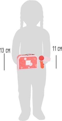 Met de Small Foot Houten Retro Speel Make-up in Koffer kunnen kinderen van 3 tot 6 jaar zich urenlang vermaken. De make-up set bevat verschillende accessoires in een retro houten koffer, waaronder make-up, een spiegel en een kam. De kleurencombinatie van rood, lichtroze en lichte houtkleur zorgt voor een vrolijke uitstraling.