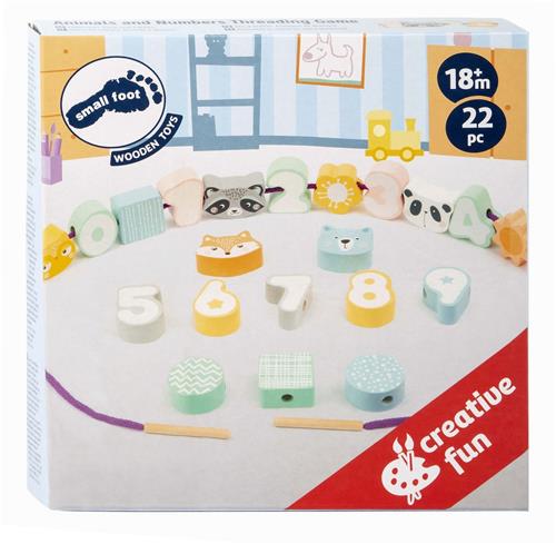 - Bij Bol.com kun je Small Foot - Houten Rijgsspel Dieren en Cijfers, 22dlg. kopen voor de prijs van € 12,98. Dit is vandaag de goedkoopste webshop.