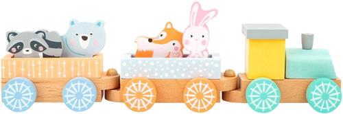 Small Foot - Houten Trein met Bosdieren Pastel, 9dlg.