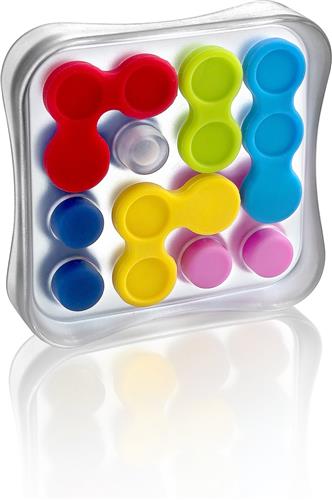 | Verpakkingsinhoud | Transparant, dubbelzijdig spelbordje, 6 kleurrijke puzzelstukken gemaakt van silicone. Er hebt geen opdrachtenboekje nodig. Voor wie dat wil is er wel een gratis app, waarmee je andere opdrachten kan oplossen dan de random opdrachten met het groene puzzelstuk. |