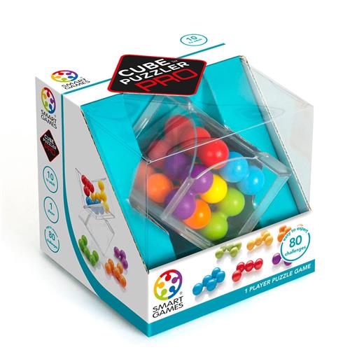 Kan jij een kubus maken met 6 balvormige puzzelstukken? Om elke opdracht tot een goed einde te brengen zal je ruimtelijk inzicht, logica en deductie moeten combineren. De transparante kubus heeft een dubbele functie! Wanneer je de transparante kubus opent kan je hem van een opbergdoosje in een spelbord veranderen. Bij het spel zit een boekje met 80 echte 3D-opdrachten en hun oplossing. Opgelet! Wanneer je de 2 delen van de transparante kubus in elkaar zet, mag je flink doorduwen totdat je een klik voelt. Op deze manier zit het spelbord stevig in elkaar en blijft het stabiel staan terwijl je de opdrachten oplost. Cube Puzzler Pro is uitdagender dan Cube Puzzler Go, omdat de opdrachten een 3D bovenaanzicht tonen, waarbij de kleur van sommige puzzelstukken niet zichtbaar is. Bij Cube Puzzler daarentegen krijg je een 2D vooraanzicht en achteraanzicht, wat iets eenvoudiger is.
