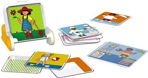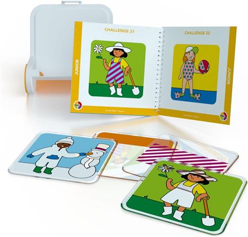 | Verpakkingsinhoud | Spelbord dat als opslagdoosje kan worden gebruikt, 8 transparante puzzelstukken met patronen en kleurvlakken, 4 transparante puzzelstukken met figuurtjes, boekje met 80 opdrachten en oplossingen. |
