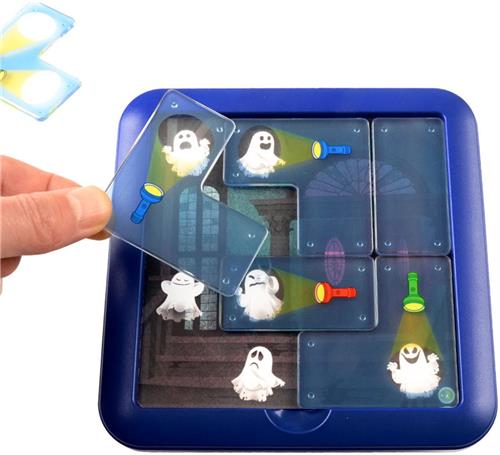 Vang de spoken met je zaklamp! Heb jij je ook ooit afgevraagd wat geesten allemaal doen in een spookhuis? Speel Ghost Hunters en laat je hersenen kraken om er achter te komen. Zet alle geesten in felle licht door bij iedere opdracht de zaklantaarns (die op puzzelstukken staan) op geesten te schijnen. Met 60 opdrachten is dit spel spannend tot laatste opdracht voor jong&oud. Leeftijd 6+ Het spelbord kan je tevens gebruiken als opbergvak voor de puzzelstukken. Handig voor op reis.