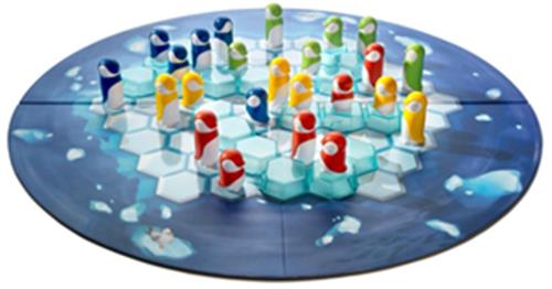 | Verpakkingsinhoud | 1spelbord, 4 pinguïnfamilies in verschillende kleuren (elke pinguïnfamilie bestaat uit 3 grote en 3 kleine pinguïns), 6 ijsblokken (4 rechte ijsblokken en 2 gebogen ijsblokken) |