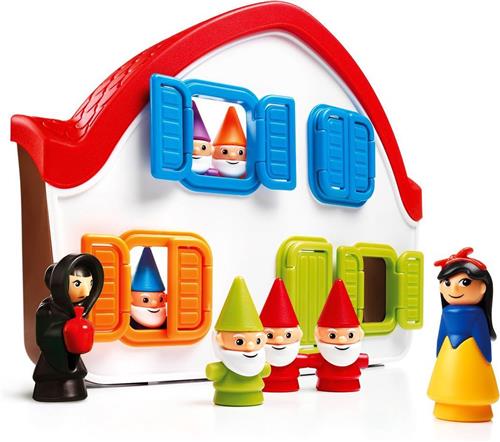 Waar is sneeuwwitje? Sneeuwwitje en de dwergen wonen in dit leuke dwergenhuisje. Weet jij wie achter welk deurtje of raam schuilt? Inclusief prentenboek Bevat 48 opdrachten. Waar is Sneeuwwitje? Kan jij de juiste plaats van Sneeuwwitje vinden tussen de dwergen en de boze heks? Deze Deluxe editie bevat ook een leuk verhalenboek met het originele sprookje in een eigentijds jasje. Je kan aan beide kanten van het mooie 3D huis spelen. Begin aan de achterkant en plaats de dwergen, de heks en Sneeuwwitje op de juiste plaats door logisch na te denken. Je kan het spel ook spelen langs de voorkant. Open en sluit dan de deuren en ramen om te kijken of je oplossing klopt met wat in het boekje staat. Sneeuwwitje Deluxe van Smart Games bestaat uit een huisje, Sneeuwwitje, de heks, 7 dwergen, een boekje met 48 opdrachten (24 langs...