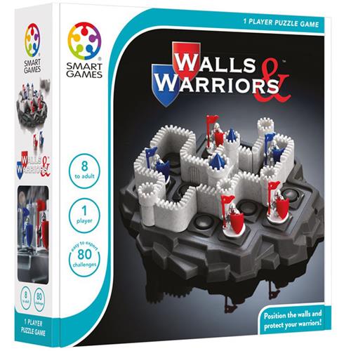 Met Smartgames Walls & Warriors kunnen kinderen vanaf 8 jaar hun strategisch inzicht en ruimtelijk inzicht ontwikkelen. Het spel bevat 80 opdrachten die variëren in moeilijkheidsgraad. Het doel van het spel is om de muren op het speelbord te plaatsen en de ridders en prinsessen te beschermen tegen de vijanden. De spelers moeten de juiste muren op de juiste plaatsen plaatsen om de vijanden te blokkeren en de ridders en prinsessen te beschermen.