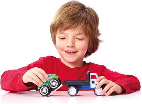 Met de SmartMax Power Vehicles Mix-Constructiespeelgoed bouwset kunnen kinderen een heel wagenpark samenstellen! Met 25 onderdelen, waaronder staven, ballen, wielen en deuren, kunnen ze creatief aan de slag om voertuigen zoals een graafmachine, bulldozer, takelwagen en meer te bouwen. Alle onderdelen zijn eenvoudig op de magnetische staven te bevestigen, waardoor er eindeloze combinatiemogelijkheden zijn.