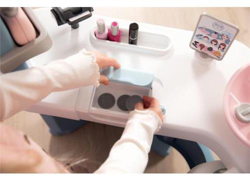 Laat je kinderen genieten van eindeloos speelplezier met de Smoby Mijn schoonheidssalon. Deze set is geschikt voor kinderen vanaf 3 jaar en zorgt voor urenlang vermaak. De verpakking bevat een kaptafel, föhn, schaar, stijltang, kam, borstel, nagellakflesjes, UV-lamp, make-up en nog veel meer om de verbeelding van je kind te stimuleren.