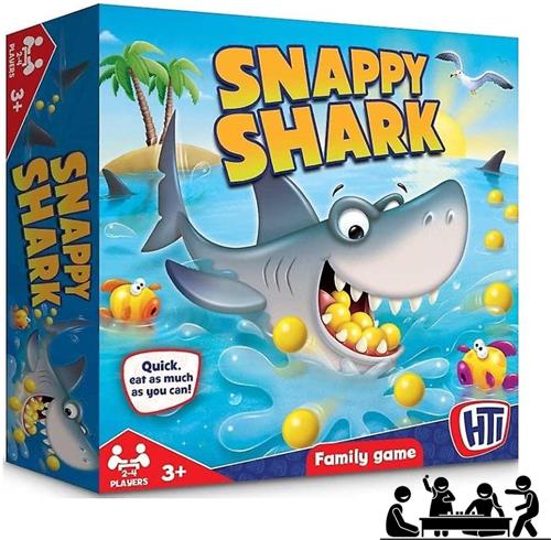 Snappy Shark spel is een leuk, 2 - 4 speler, familie spel waarbij het doel is om je haai zoveel mogelijk van de ballen te laten eten. De speler met de meeste ballen is de winnaar. Dit behendigheidspel is geschikt voor zowel kinderen als volwassenen en heeft een aanbevolen minimumleeftijd van 3 jaar. Met een aanbevolen maximale leeftijd van 99 jaar kan het spel door een brede doelgroep gespeeld worden.