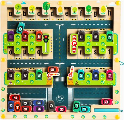 Leerzaam en leuk! Het Solacis Speelgoed voor onderweg is het perfecte spel om kinderen van 3 tot 6 jaar te helpen bij het leren van letters en het verbeteren van hun motorische vaardigheden. Dit magnetische doolhof combineert educatie en spel op een unieke manier door kinderen hun auto's op de juiste plek te laten 'parkeren' aan de hand van letters. Zo wordt leren een feestje!