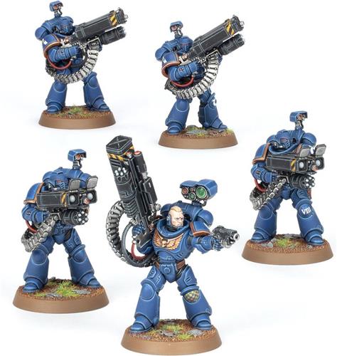 Elke model's raketlanceerinrichting kan worden geladen met superfrag-granaten die bedoeld zijn om infanterie uit te schakelen of superkrak-raketten die tanks kunnen vernietigen, en beschikt over een ondervoorste Castellan-lanceerder. Je kunt één model bouwen als sergeant, die geavanceerdere richtoptica heeft en zijn raketten kan upgraden naar een Vengor-lanceerder - een geleide zware raket. Daarnaast bevat het pakket een verscheidenheid aan cosmetische opties, zoals zegels van zuiverheid, holsters voor pistolen, verschillende richtoptica, open en gesloten kleppen voor beide soorten raketten, en varianten van hoofden en armen voor je sergeant.