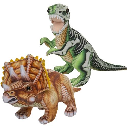 - Bij Bol.com kun je Speelgoed set van 2x pluche dino knuffels T-Rex en Triceratops van ongeveer 30 cm kopen voor de prijs van € 42,99. Dit is vandaag de goedkoopste webshop.