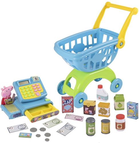 De Speelgoedkassa Peppa Pig Supermarkt is geschikt voor kinderen vanaf 3 jaar en maakt geluid, waardoor het spelen nog realistischer wordt. De verpakking bevat een boodschappenkar en de kassa inclusief muntgeld, briefgeld, boodschappen en een creditcard. De kassa werkt op 2 AAA-batterijen en voldoet aan alle veiligheidsnormen voor kinderspeelgoed.