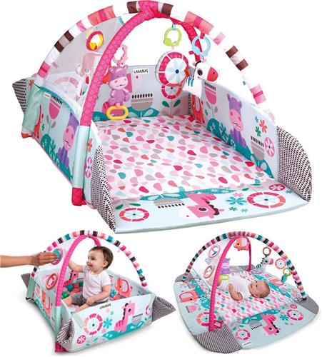 Dit speelkleed voor baby's is niet zomaar een standaard speelkleed. Het is een 5in1 speelkleed dat ook dienst doet als buikligtrainer. Met aanpasbare wanden kan de babygym worden omgetoverd tot een ballenbak inclusief 30 ballen en 5 speeltjes. Deze activity gym is perfect als baby cadeau en geschikt voor kinderen vanaf 0 maanden.