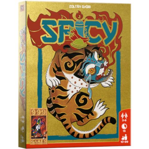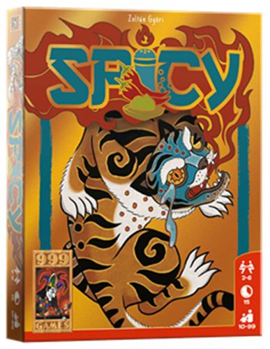 Spicy is een spannend, boeiend kaartspel met prachtig artwork en een uitstekende productiekwaliteit. De kaarten zijn geïllustreerd met veertig verschillende kunstwerken. Tijdens je beurt kun je een kaart spelen of een kaart trekken. Om een kaart te spelen, moet je ofwel een stapel starten of een hogere kaart van dezelfde soort spelen. Stapels kunnen alleen worden gestart met kaarten met nummer 1 tot 3. Zodra een stapel de 10 bereikt, moet er een 1 tot 3 van dezelfde soort op worden gespeeld. Bij het spelen van een kaart kondigen spelers de kaart aan die ze zogenaamd spelen. Spelers kunnen bluffen en eigenlijk elke kaart spelen die ze willen, omdat alle kaarten met de afbeelding naar beneden worden gespeeld. En nadat elke kaart is gespeeld, kunnen spelers deze uitdagen op nummer of kleur. Uitdagen kost je niet veel kaarten: je trekt twee kaarten, maar je speelt er meteen één. In het begin van het spel heeft iedereen een handvol kaarten, dus de kansen zijn niet per se in het voordeel van de uitdager, maar de beschuldigingen beginnen te komen wanneer de handen van spelers leeg beginnen te raken. De winnaar van de uitdaging krijgt de opeenstapeling van pittige kaarten. De verliezer trekt kaarten en begint een nieuwe stapel. Als een speler geen kaarten meer heeft, mag hij een van de drie trofeekaarten pakken. Het spel eindigt wanneer een speler twee trofeekaarten heeft, in dat geval wint deze speler. Elke trofeekaart is 10 punten, elke veroverde pittige kaart 1 punt en kaarten die een speler nog in de hand heeft, zijn een minpunt waard.