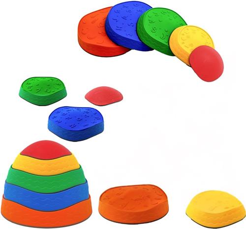 Kinderen kunnen hun fantasie de vrije loop laten met de verschillende vormen, kleuren en educatieve patronen op de stenen. Of ze nu hindernisbanen creëren of samen verschillende spellen spelen, dit speelgoed biedt eindeloze mogelijkheden voor zowel praktisch leren als fysiek spel. Dankzij de antislip onderkant kunnen ze veilig springen en klimmen, terwijl ze tegelijkertijd letten op hun evenwicht.