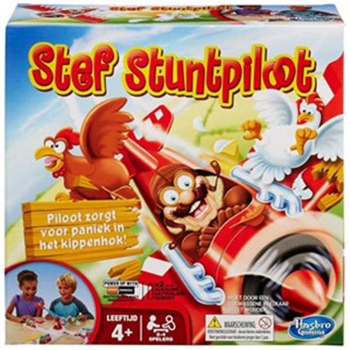 Stef Stuntpiloot is het bekende spel voor jong en oud. Hij stunt, stuitert en duikt maar raak. Met Stef Stuntpiloot wordt het gegarandeerd een hilarische bedoening. Stef vliegt steeds langs jouw kippenhok. Kun jij jouw kippen beschermen tegen Stef en zijn stuiterende stuntvliegtuig? Druk op tijd op de arm zodat Stef weer omhoog vliegt en jouw kippen mist, maar probeer hem tegelijkertijd zo te lanceren dat de kippen van je medespelers wel sneuvelen. Ben jij de beste piloot en leven jouw kippen nog terwijl de anderen er geen meer over hebben? Dan win jij dit te gekke spel! Stef Stuntpiloot is een actief spel voor jonge kinderen, maar wordt ook veel gebruikt om te spelen met groepen vrienden op feestjes.
